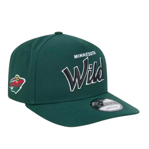 - The Minnesota Wild 9FIFTY A-Frame Snapback features a scripted name at the front panels with the team logo the side, a snapback closure at the rear, and a gray undervisor.